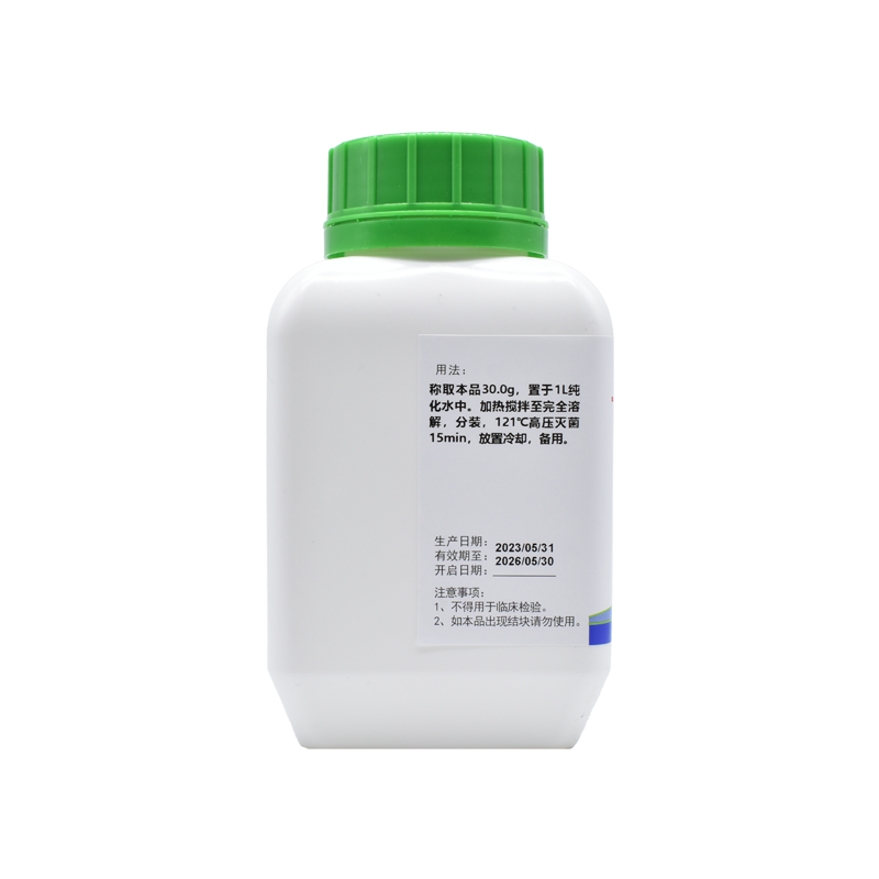 2、培養(yǎng)基應(yīng)置于避光、干燥處保存,使用后應(yīng)立即旋緊瓶蓋,以免吸潮結(jié)塊。