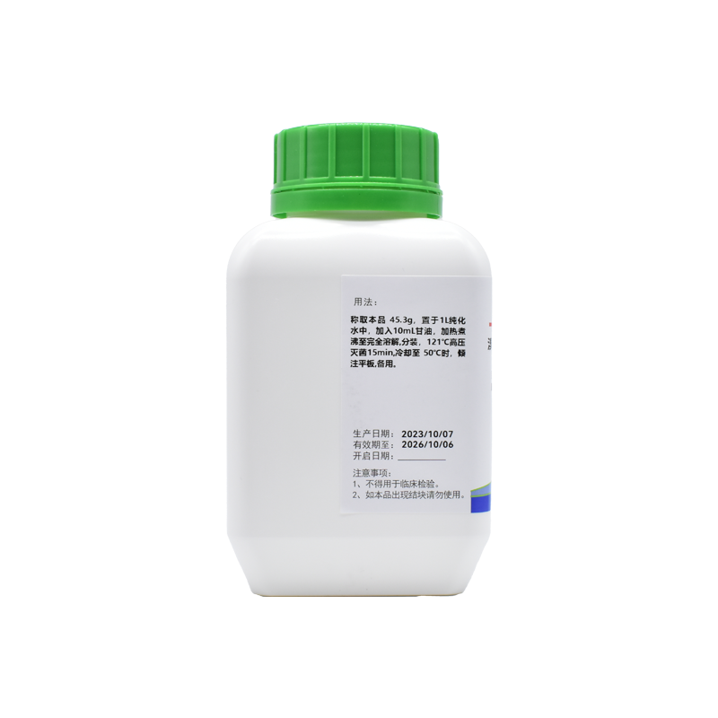 使用方法 | 稱取本品45.3g,置于1L純化水中,加入10mL甘油,加熱煮沸至完全溶解,分裝,121℃高壓滅菌15min,冷卻至50℃,傾注平皿,備用。 | 拆開包裝即可使用 | 拆開包裝后、水浴加熱復(fù)溶后傾注平板使用 |