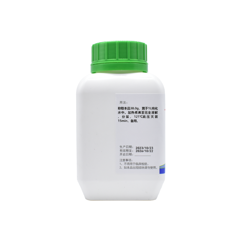 使用方法 | 稱取本品38.0g,置于1L蒸餾水中,加熱煮沸至完全溶解,分裝,121℃高壓滅菌15min,備用。 | 拆開包裝即可使用 |